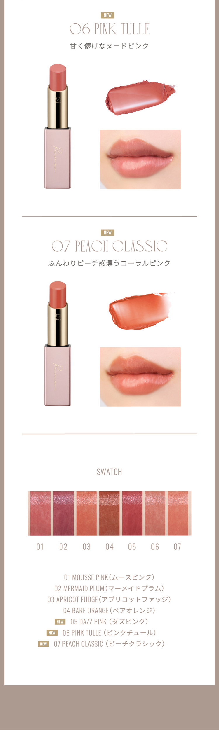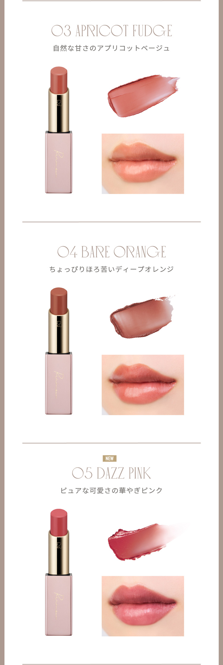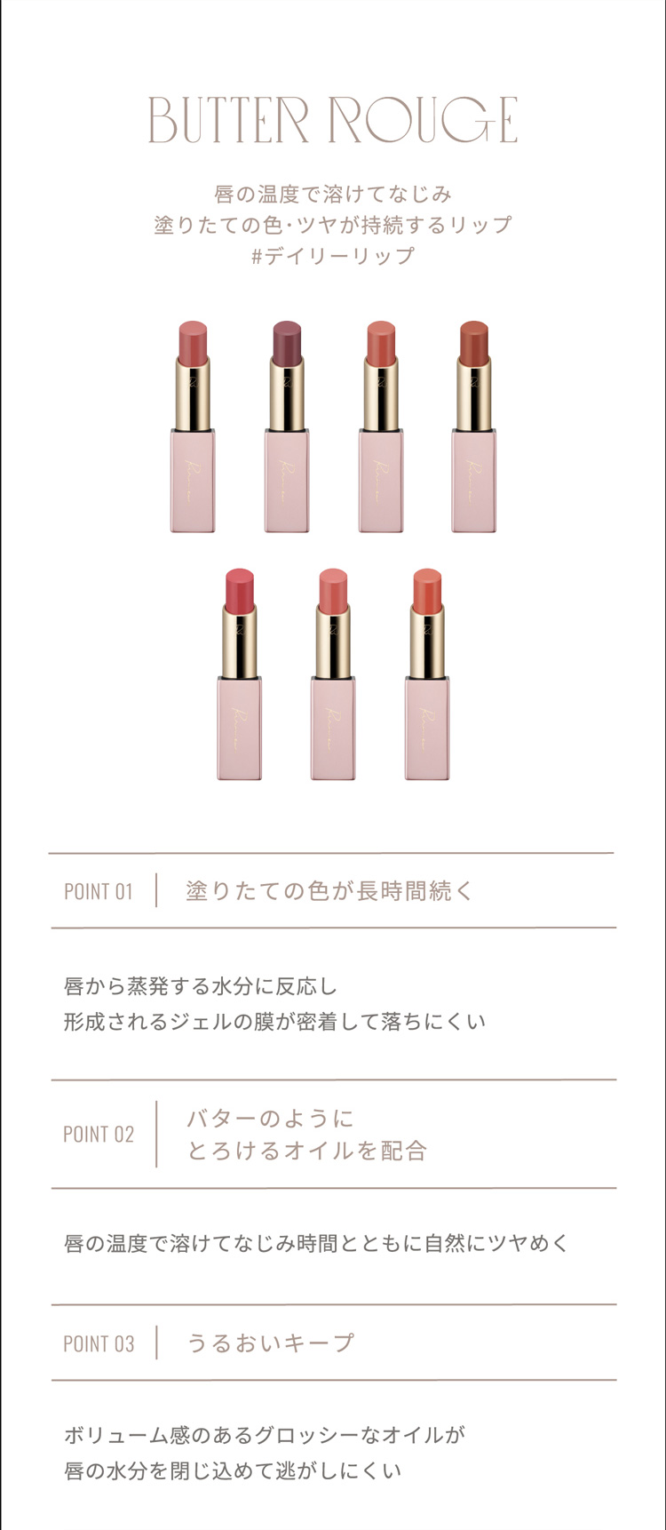 唇の温度で溶けてなじみ、塗りたての色・ツヤが持続するリップ。