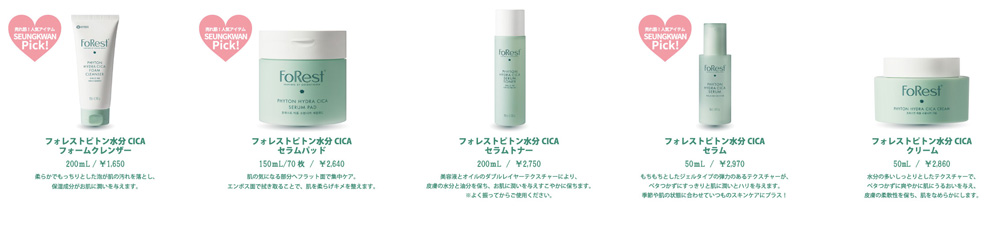 ・フォレストピトン水分CICA(セラムトナー、セラム、クリーム、フォームクレンザー、セラムパッド)