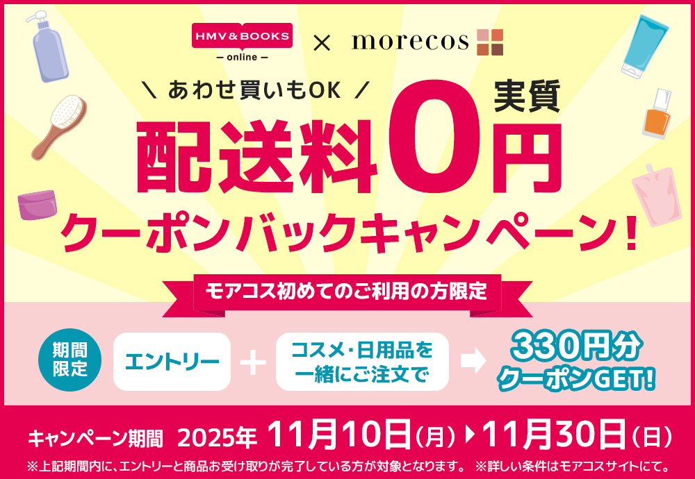 \11月10日〜11月30日開催/配送料実質0円!クーポンバックキャンペーン【HMV&BOOKS online×モアコス】